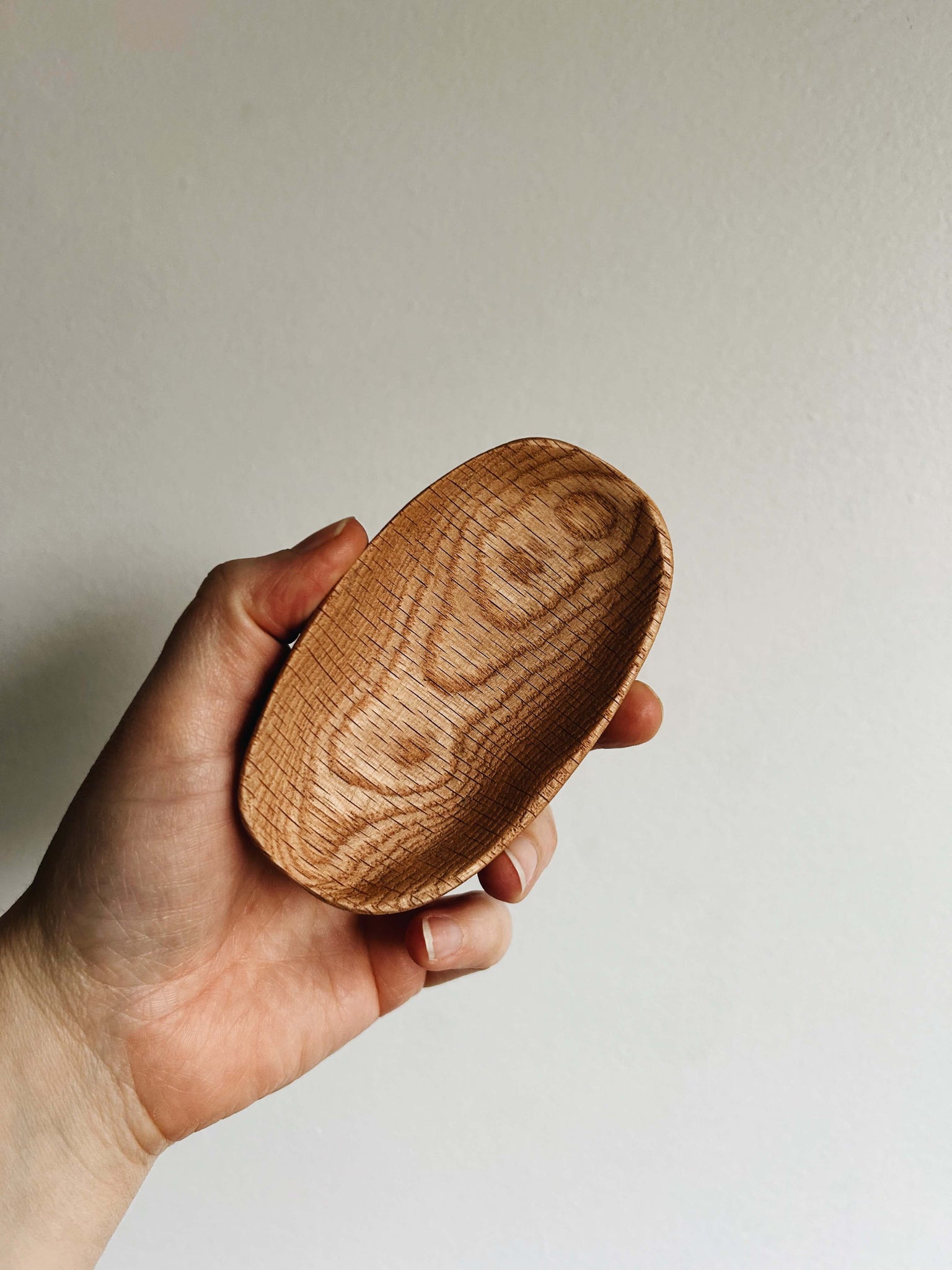 Hand crafted wonky bowls that will serve as a catch all for rings or keys, finished with food safe finish so perfect for sauces and jams. Carved individually, each wonky bowl is a little different in shape and size and is versatile and durable. Hand wash only, finished with Wax + Oil food safe finish, not made to be a soap dish. Natural product so each bowl will be unique in grain pattern, color variation, length and depth. Length approximately 2" for small and 3" for large (small and large being relative here, just wanting to provide some differentiation between the sizes you can see below).